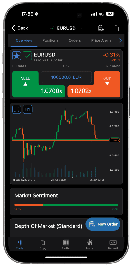 Gain access to our tight spreads and fast execution speeds directly from your app device. You will get